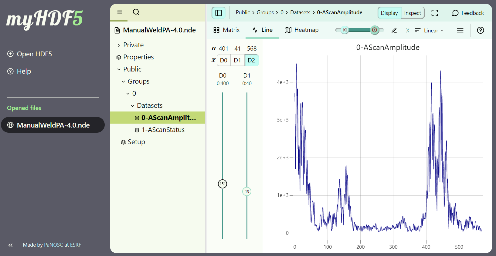 Any .nde file can be opened using a regular HDF5 reader such as HDFView or MyHDF5, allowing you to explore its structure and get a glance at its content. Learn more by exploring some of our example files.
