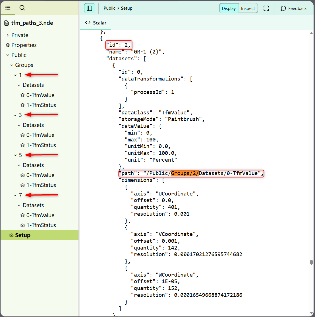 In some cases, Groups Ids were assigned incorrectly in the HDF5 structure when multiple TFM groups were configured (see example below), resulting in a mismatch with the JSON-formatted Setup dataset information.